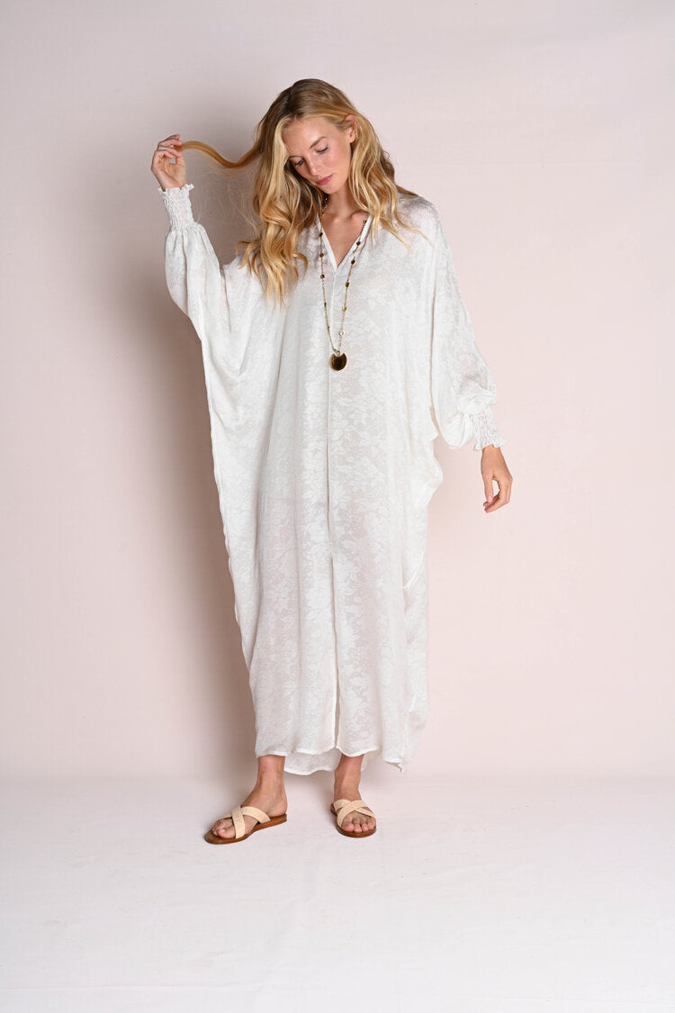 Poet Sleeve Roper : White on White Rose Silk Gauze